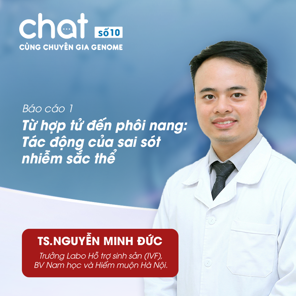 - Bài báo cáo 1: “Từ hợp tử đến phôi nang: Tác động của sai sót nhiễm sắc thể” – TS Nguyễn Minh Đức – Trưởng Labo Hỗ trợ sinh sản (IVF), Bệnh viện Nam học và Hiếm muộn Hà Nội.