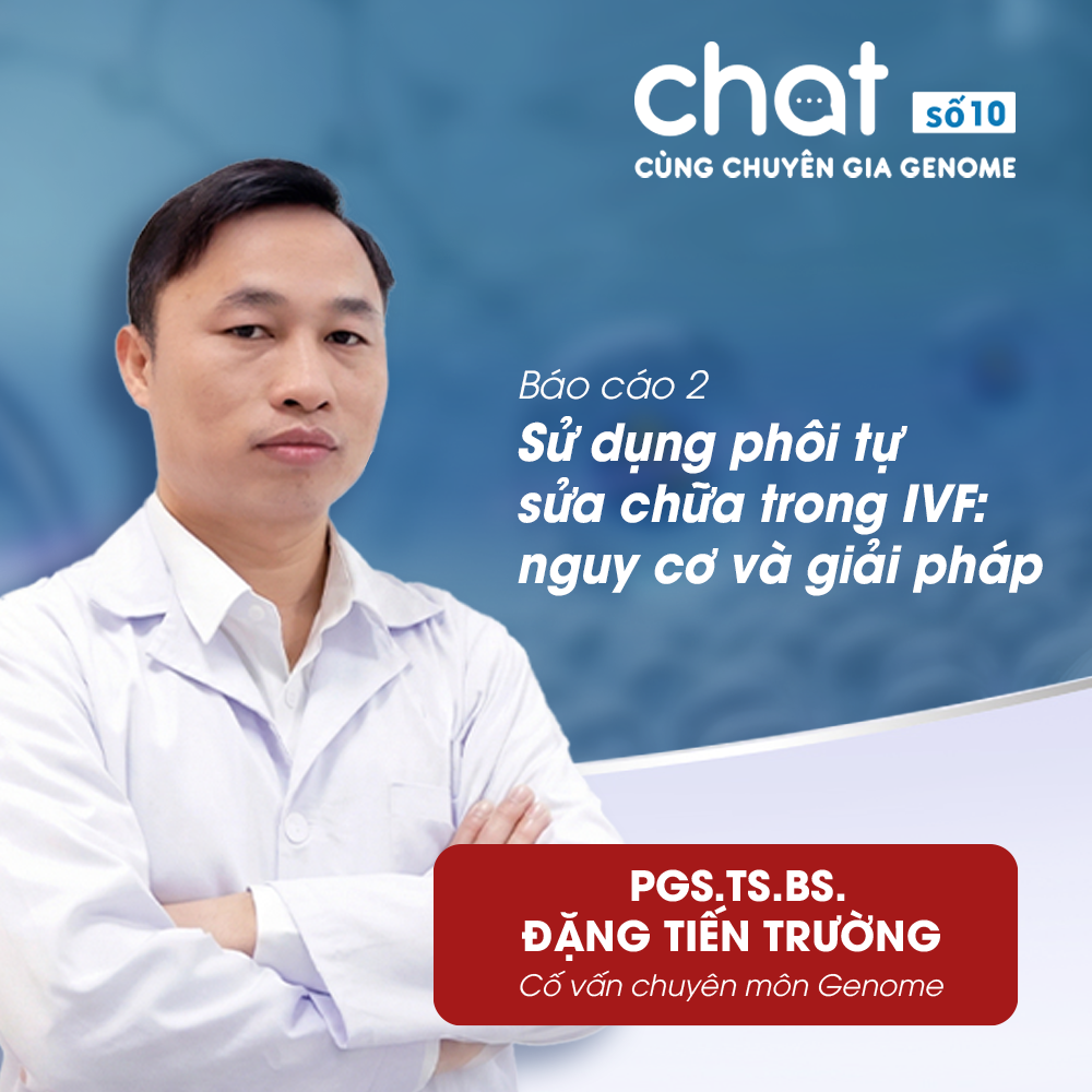 - Bài báo cáo 2: “Sử dụng phôi tự sửa chữa trong IVF: Nguy cơ và giải pháp” – PGS.TS.BS. Đặng Tiến Trường – Học viện Quân Y – Cố vấn chuyên môn cao cấp Genome
